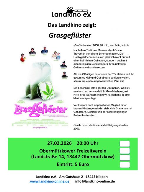 - +++ 27.02.2026 20:00 - Landkino - Grasgeflüster - Obermützkower Freizeitverein