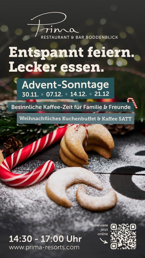 - +++ 21.12.2025 14:30–17:00 - weihnachtliches Kuchenbuffet - Prima Restaurant & Bar Boddenblick