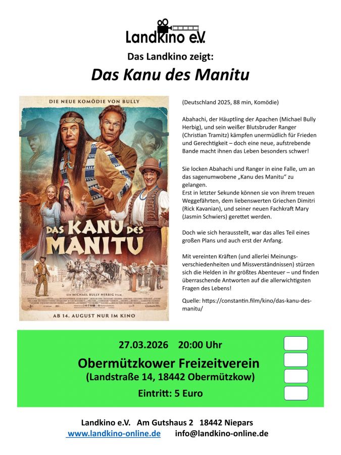 - +++ 27.02.2026 20:00 - Landkino - Grasgeflüster - Obermützkower Freizeitverein