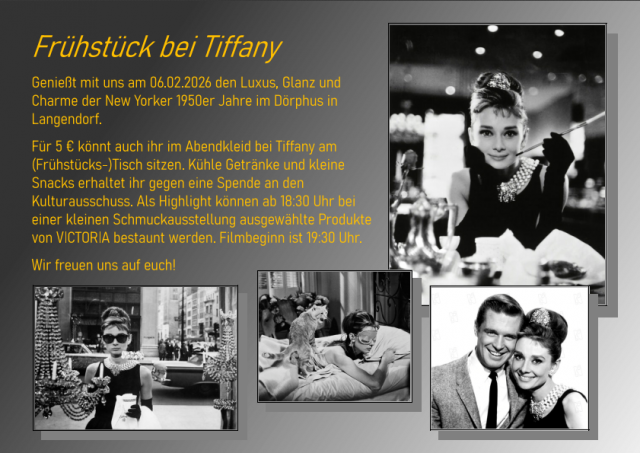 - +++ 06.02.2026 18:30 - Frühstück bei Tiffany - Filmvorführung - Dörphus Langendorf