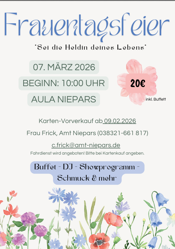 weitere Informationen erhalten Sie auf unserer Webseite www.amt-niepars.de