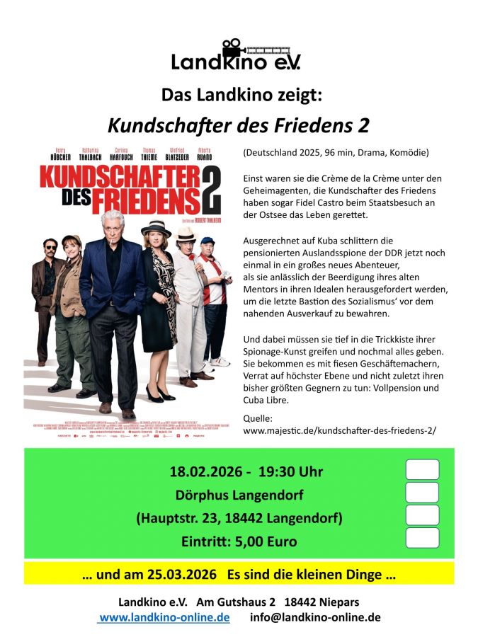 - +++ 18.02.2026 19:30 - Landkino - Kundschafter des Friedens 2 - Dörphus Langendorf