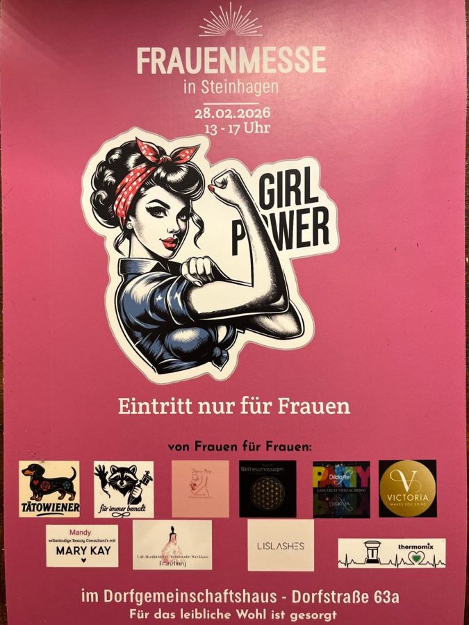 - +++ 28.02.2026 13:00–17:00 - Frauenmesse - Dorfgemeinschaftshaus Steinhagen