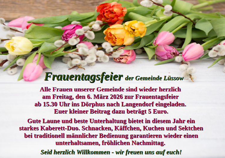 - +++ 07.03.2026 15:00 - Frauentagsfeier - Gemeindezentrum Pantelitz
