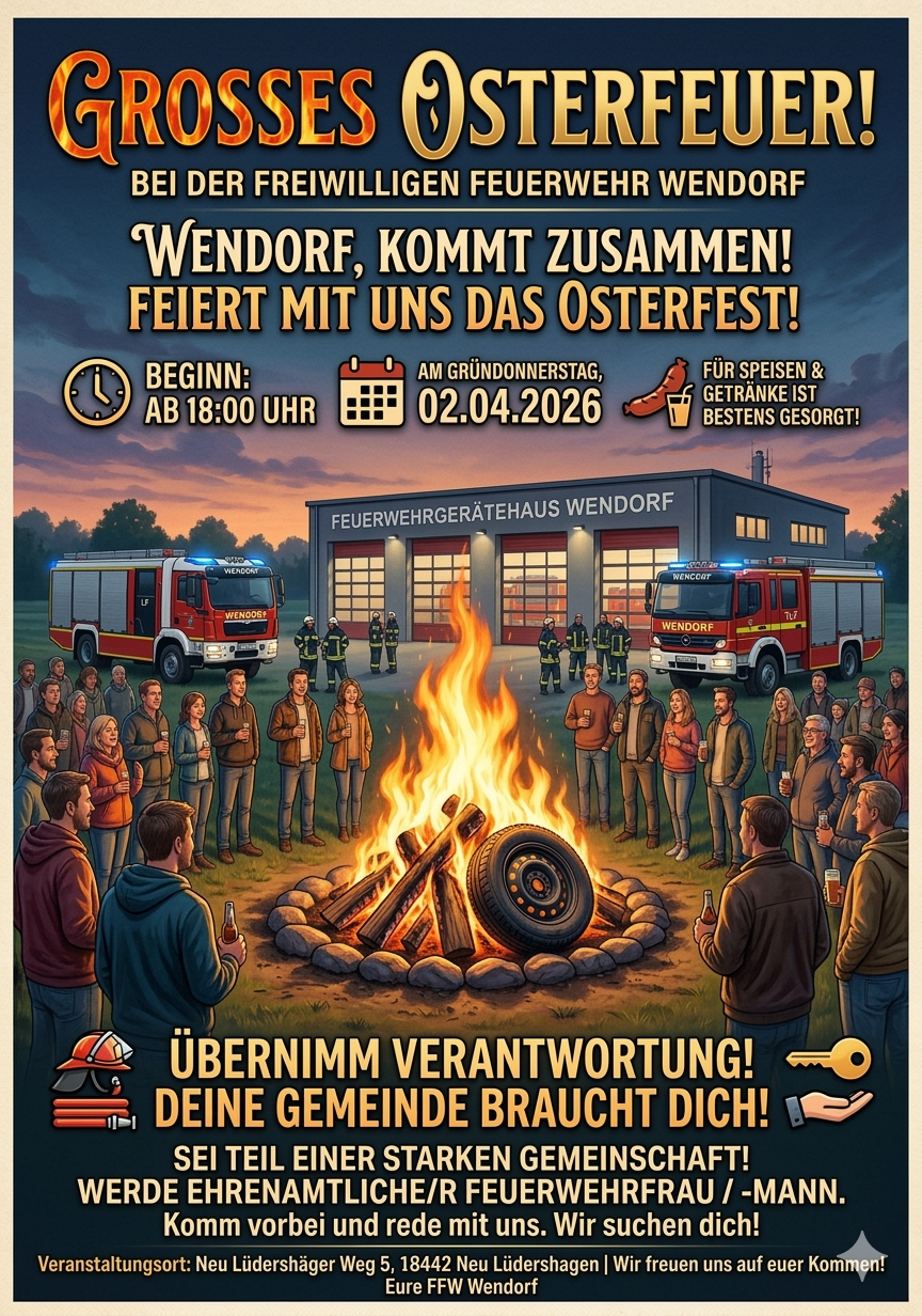 Osterfeuer der Freiwilligen Feuerwehr Wendorf