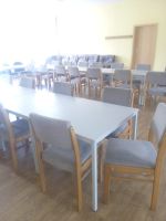 Ausgestattet ist das Gemeindezentrum mit 18 Tischen und 80 Sitzplätzen, 2 Toiletten sowie einer Küche mit Kühlschrank Kaffeemaschine, Herd, Abwäsche, Geschirr, Töpfe und Besteck.
